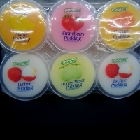 Összetevők: víz, cukor, kókuszgél 17% (kókusztej, cukor), gyümölcs juice 5% (licsi, narancs, eper, mango, sárgadinnye), tejpor, zselésítőszer: E407, savanyúságot, aroma, szabályozó anyag: E330, színezék E102, E129, E133, E102, E129 (kedvezőtlen hatással lehet a gyermekek aktivitására és figyelmére).